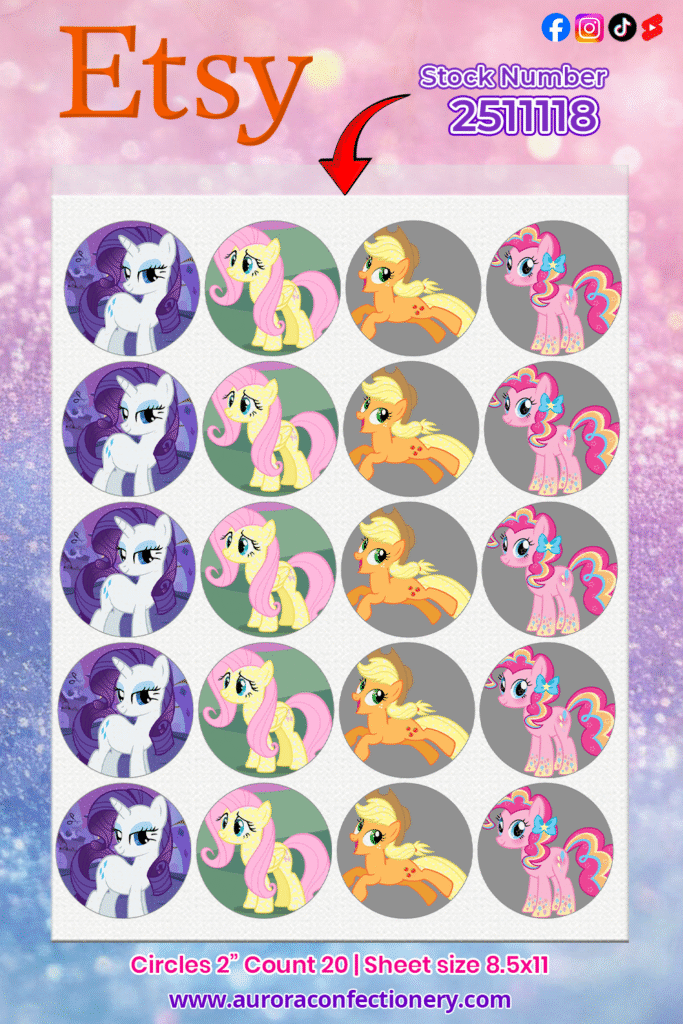 These My Little Pony edible cupcake toppers are perfect for birthdays, themed parties, dessert tables, and any event that needs a touch of sweetness and color. With premium-quality edible printing, your treats will look vibrant and unforgettable. When you’re ready to order, make sure to use Stock #2511118 so we print this exact design for you.