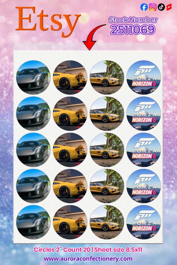 These premium edible prints are ideal for racing-themed birthdays, car enthusiast parties, gaming celebrations, and dessert tables that need a bold, high-octane touch. Every sheet is crafted for clarity, color, and easy decorating. When you’re ready to order, make sure to use Stock #2511069 so we can print this exact design for you.
